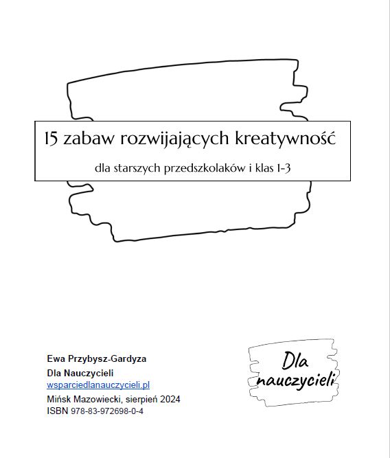 Publikacja zawiera pomysły na rozwijanie kreatywności w starszych grupach przedszkola oraz w klasach 1-3. Zabawy są tak skonstruowane, aby nie wymagały od nauczyciela wielu przygotowań - zazwyczaj wystarczy zgromadzić łatwo dostępne materiały. Jednocześnie pozwalają rozwijać inne kompetencje: współpracę, nastawienie na rozwój, komunikację.